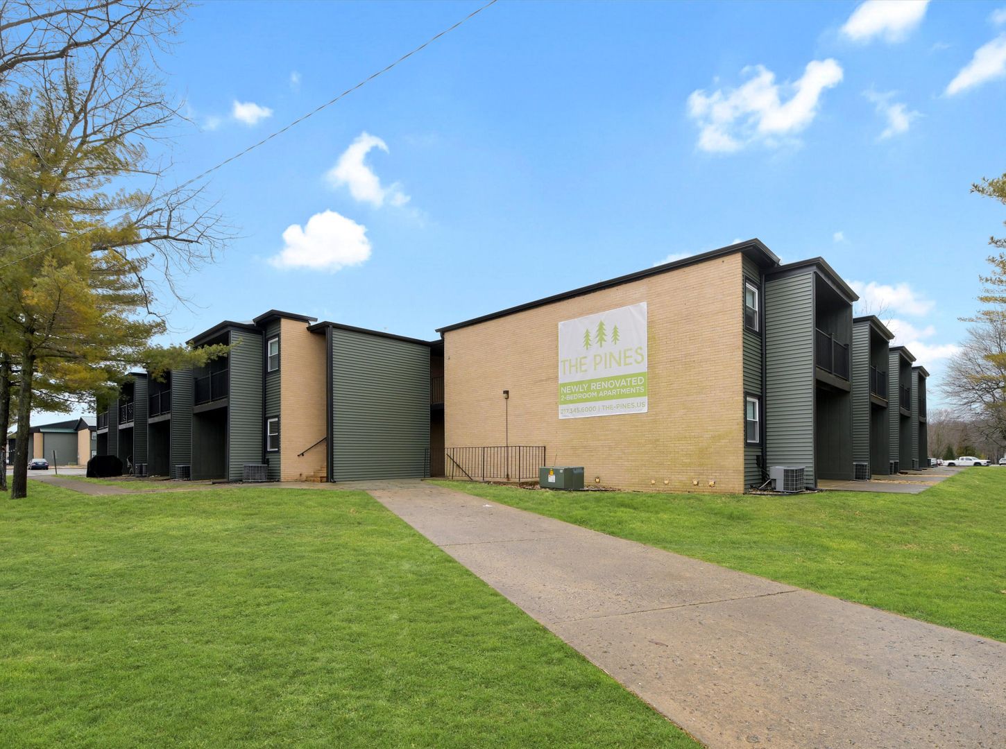 At The Pines, you'll be close to EIU and even closer to the great outdoors. The wide common breezeways and open outdoor spaces will give you plenty of natural light as well as room to stretch out on the lawn or relax on the patio with your friends. Includes free, fast WIFI, large capacity IN UNIT front load washers and dryers, stainless steel appliances, granite countertops, soft close cabinets, new modern bathrooms, luxury plank flooring and new windows with roller shades. Save money every month with our efficient features including LED lights, energy star appliances, and high-efficiency furnaces/central AC. This is a pet-friendly building located just south of campus.