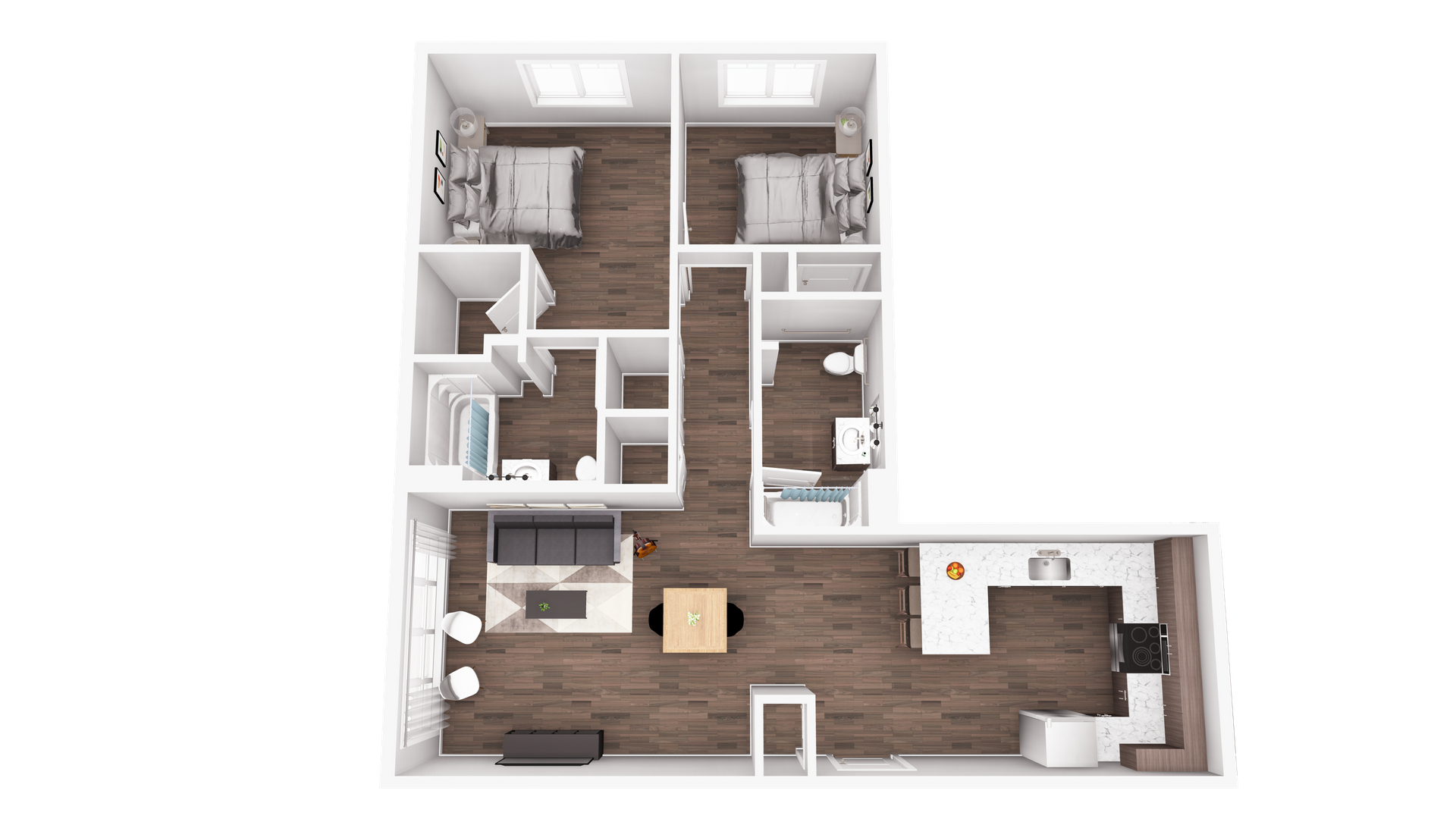 • Hardwood-style flooring and modern lighting