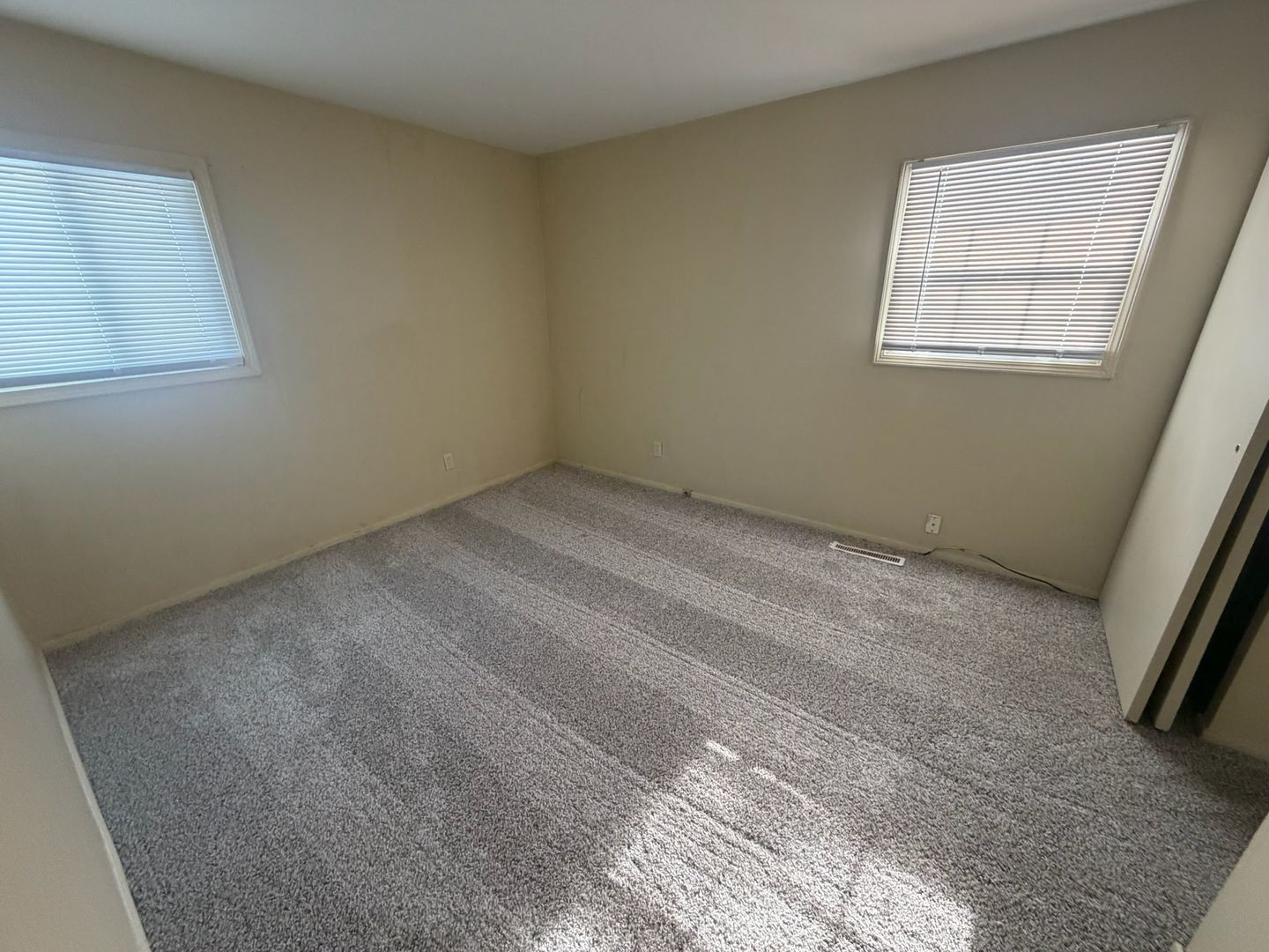 Carpet and vinyl flooring throughout, a private driveway, and a bathtub in the bathroom complete the space. A comfortable and practical place to call home.