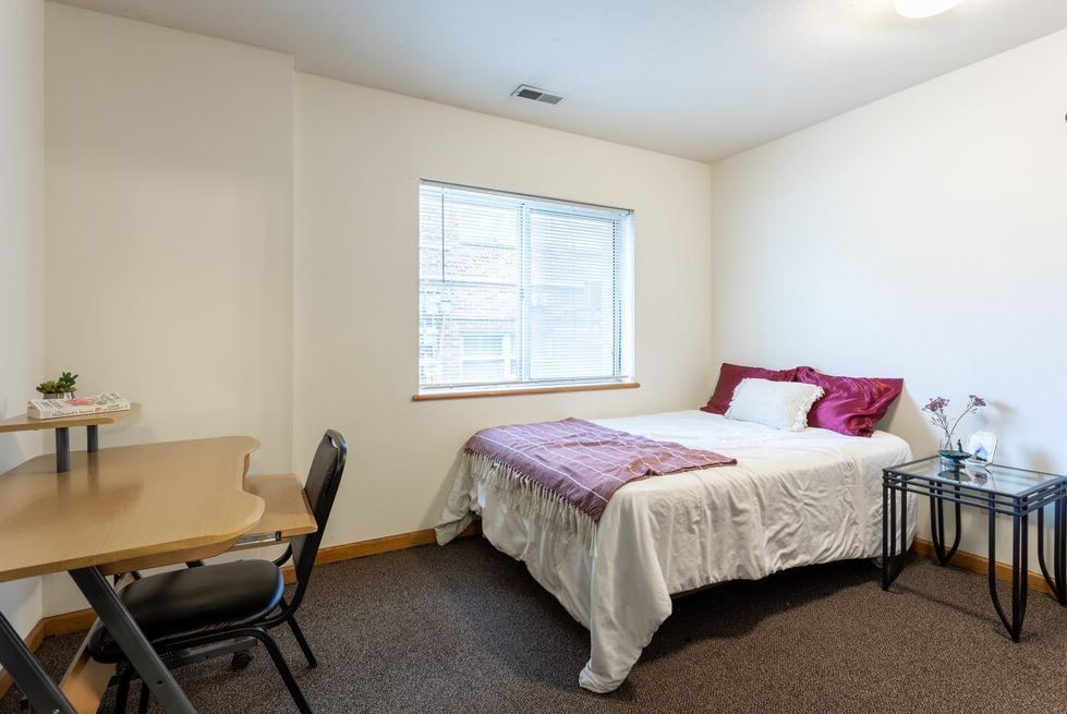 The kitchen comes equipped with an electric stove, dishwasher, garbage disposal. Each unit comes fully furnished and has shared laundry in the building.